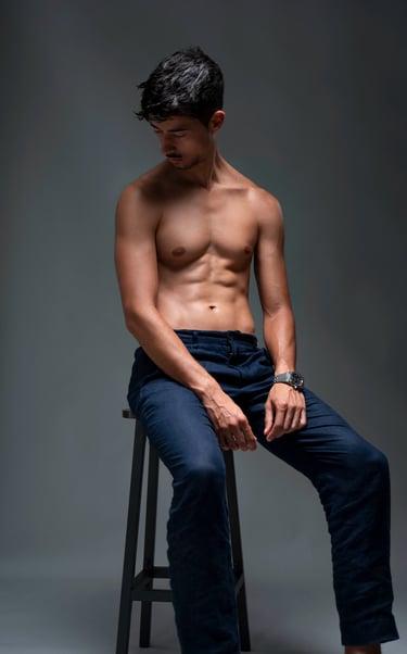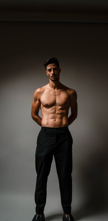 I spent decades in corporate and private banking. I maintain visible physical discipline while operating in high-stakes professional environments. I own, shoot, model in, and operate a professional studio equipped with over CHF 100,000 in cameras and gear.