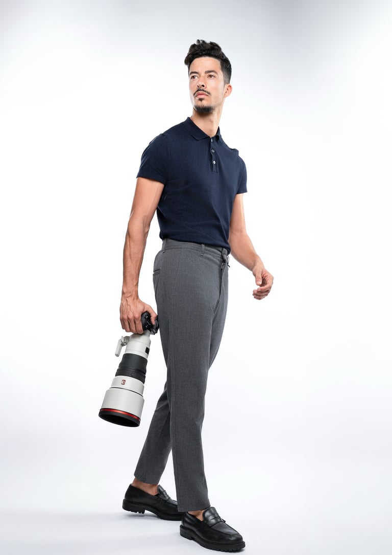In style and image, I model, I shoot, and I own a production studio in Zurich. I understand how visual identity functions — not as decoration, but as structure. Posture, grooming, wardrobe coherence, spatial awareness, and behavioural cues all operate together to signal authority and trust. I live this professionally, in front of the camera and behind it.